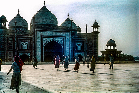 Along the way we made short visits in old and New Delhi and Agra. Arriving late in the evening at Agra gave us the opportunity to ‘camp’ our vans at the entrance to the grounds of the Taj Mahal. The following morning, early, before the Taj grounds opened to the public, I had an experience not to be forgotten. Still in my head is a comic memory of taking a ‘shower’ in the entrance gate, using the faucets provided to guests for symbolic cleansing before entering the grounds.